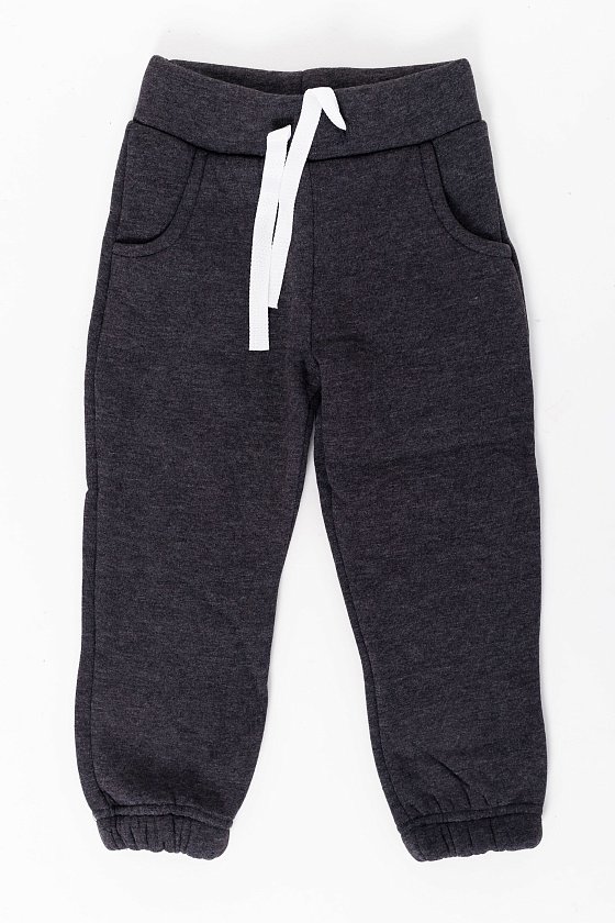 Тёплые, детские брюки выполнены из полотна с начёсом. По бокам расположены карманы, а для комфортной посадки в пояс вставлены шнур и резина. Низ брюк на резине.