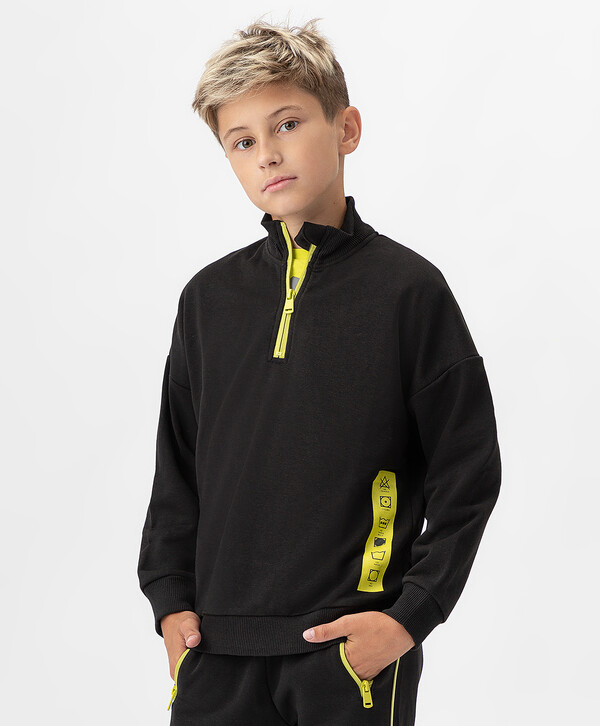 40% полиэстер цветЧерный60% хлопок/40% полиэстер Хлопок Толстовка на неполной молнии с высоким воротником черная Button Blue