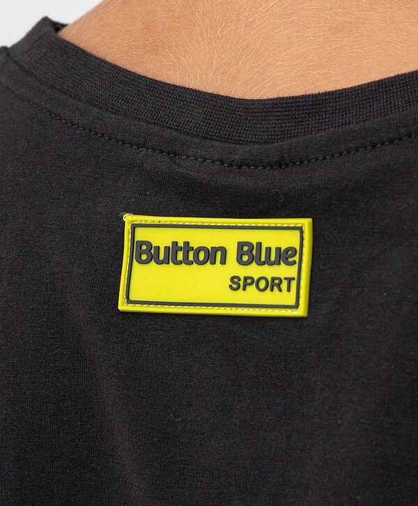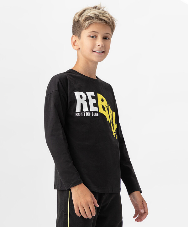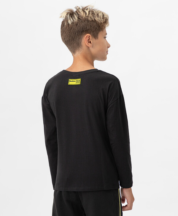 5% эластан цветЧерный95% хлопок/5% эластан Хлопок Футболка с длинным рукавом из натурального хлопка с ярким принтом черная Button Blue