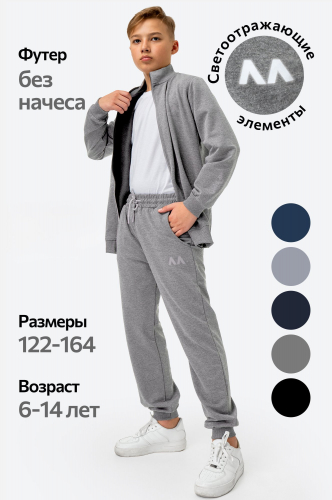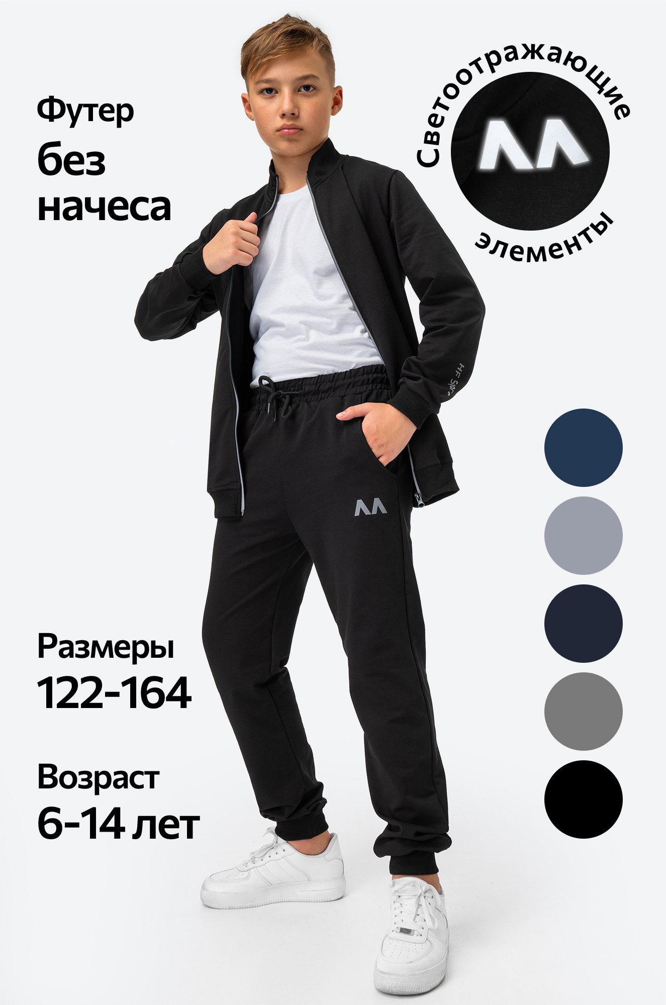 Комфорт в каждом движении! Детский спортивный костюм с брюками для мальчиков и девочек выполнен из плотного футера двухнитки. Толстовка с застежкой на молнию, мягкие манжеты и светоотражающие элементы делают черный костюм для детей и подростков стильным и практичным.