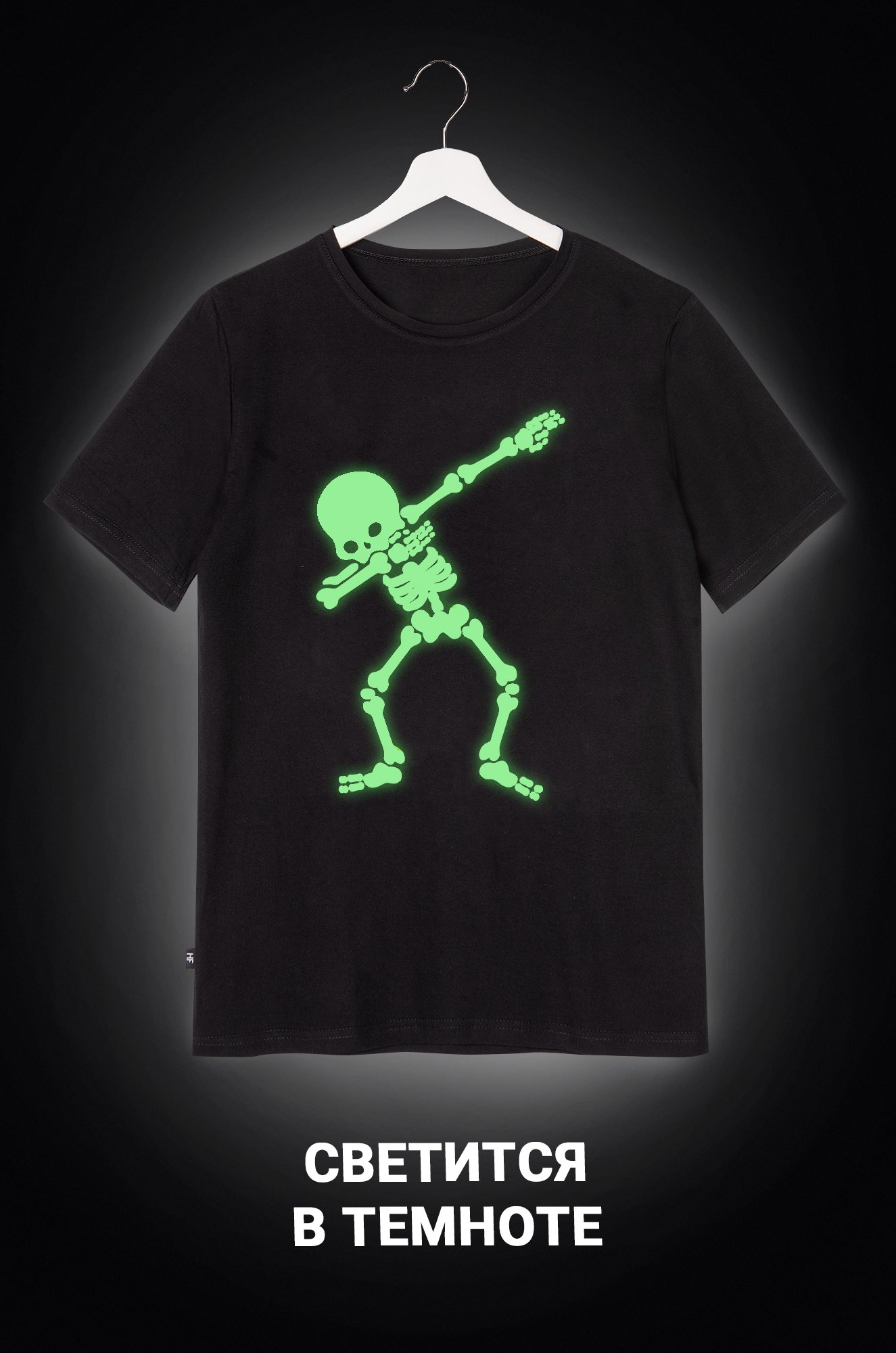 Детская футболка для мальчиков и подростков выполнена из натурального 100% хлопка. Черная футболка для детей украшена страшно) привлекательным принтом, который светится в темноте. Она идеально подойдет для стильных повседневных образов и станет классным акцентом в гардеробе.