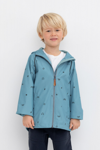 Ветровочные брюки из мембранной, фактурной ткани с дополнительной тефлоновой обработкой. Данный вид обработки предохраняет изделие от загрязнения и лучше отводит влагу. Подклад из 100% хлопка. Область коленей дополнительно усилена деталями из основной ткани. В поясе предусмотрен шнурок для регулировки ширины изделия. Во всех изделиях верхнего ассортимента для безопасности ребенка предусмотрены светоотражающие элементы.