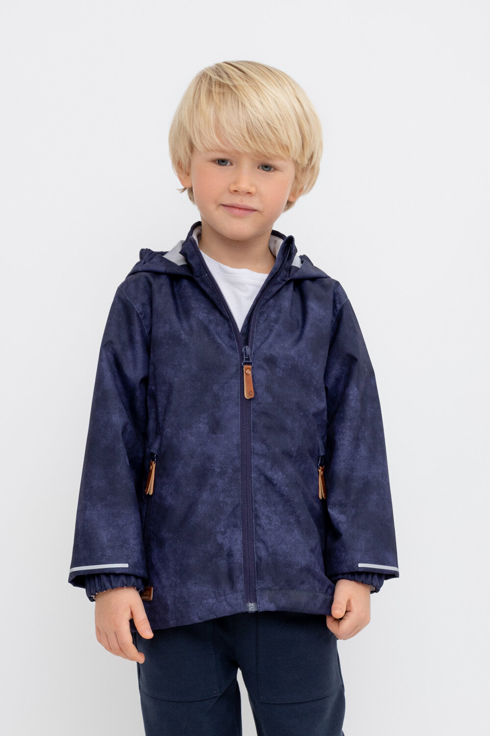 Ветровка для мальчика из мембранной ткани с дополнительной тефлоновой обработкой. Верхняя мембранная ткань 1000/1000 с тефлоновым покрытием отталкивает воду и грязь и обладает «дышащими» свойствами. Подкладка выполнена из 100% полиэстера. У изделия предусмотрена защита подбородка. Несъемный капюшон регулируется с помощью эластичного шнура со стопперами. Низ рукавов имеет эластичную резинку для лучшего прилегания. Во всех изделиях верхнего ассортимента для безопасности ребенка предусмотрены светоотражающие элементы