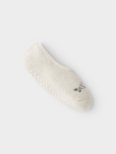 Носки махровые с формованной пяткой и отворотом по краю. На подошве резиновые стопперы. Украшены рисунком. Изделие сохраняет форму и стойкий цвет после многочисленных стирок.