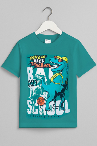 Футболка с коротким рукавом не сковывает движений благодаря свободному прямому крою и позволяет ребенку всегда оставаться активным. Благодаря удобной длине зеленую футболку из трикотажа можно носить заправленной и навыпуск.