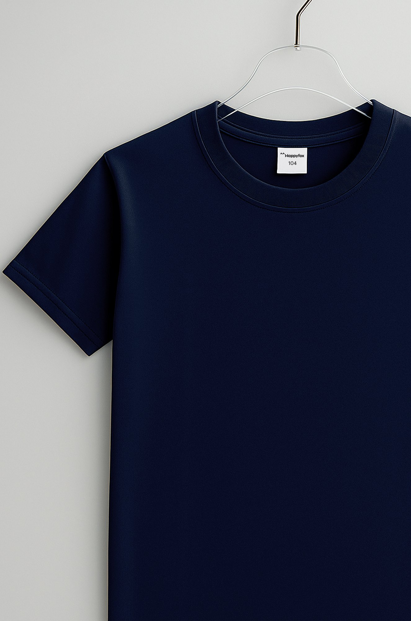 Универсальная синяя футболка для девочек и мальчиков подойдет на каждый день! Базовая детская футболка выполнена из 100% хлопка.