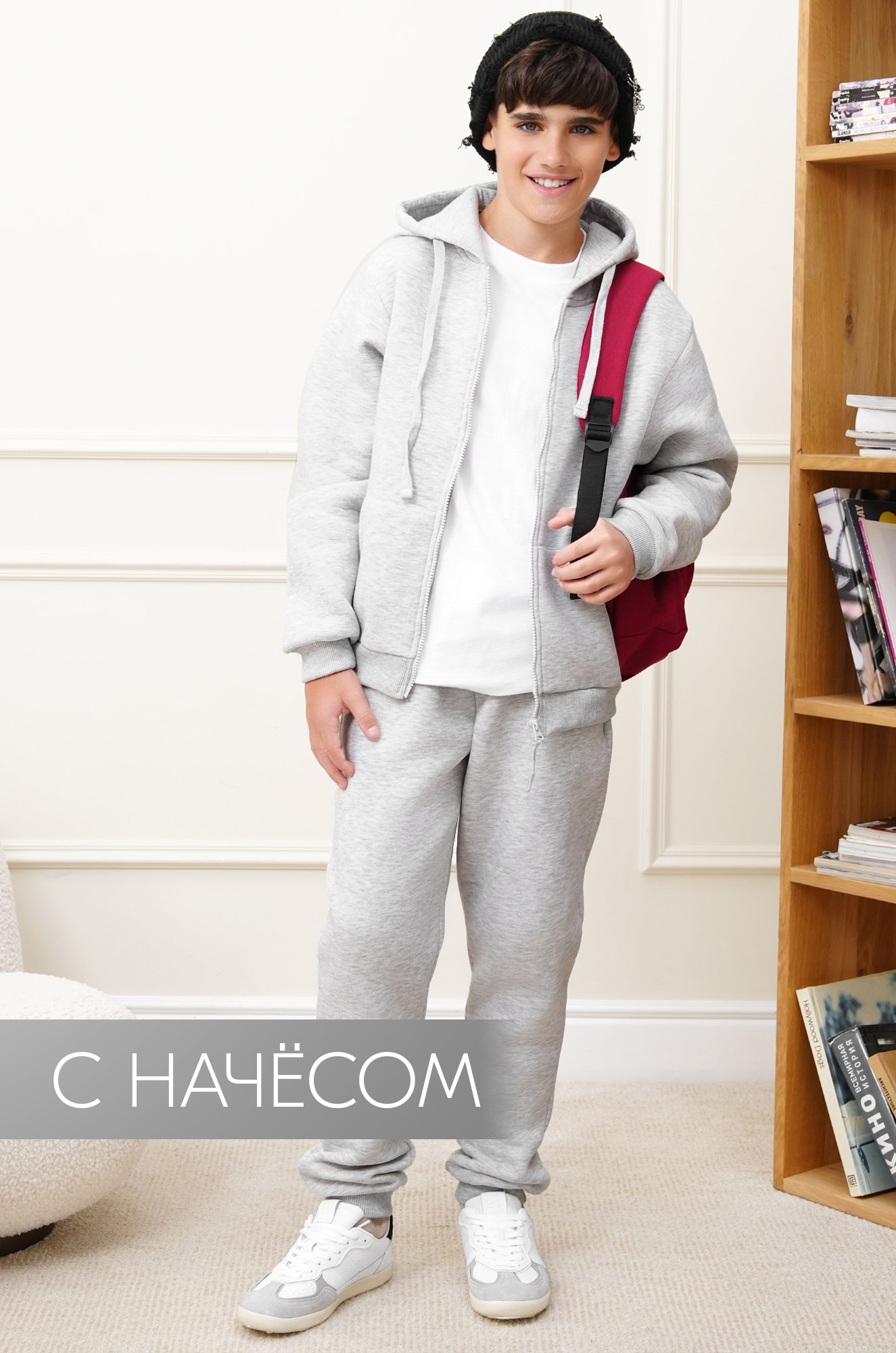 Детский костюм с худи и брюками для мальчиков и девочек выполнен из плотного трикотажа футер с начесом. Базовый светло-серый цвет делает комплект для подростков универсальным и легко вписывается в повседневные образы.