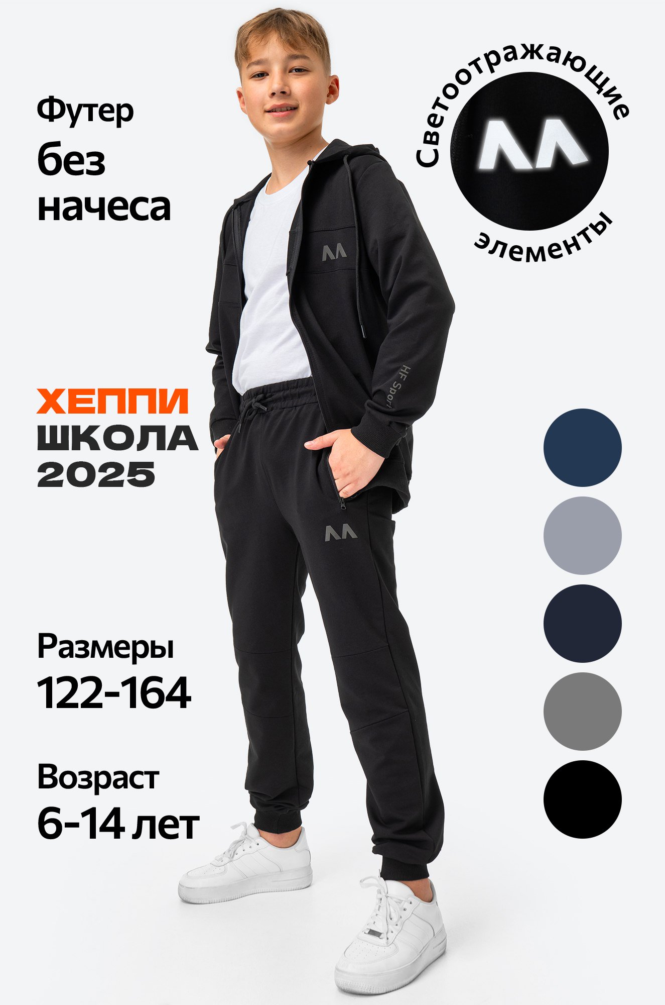 Комфорт в каждом движении! Детский спортивный костюм с брюками для мальчиков и девочек выполнен из плотного футера двухнитки. Толстовка с застежкой на молнию, глубокий капюшон, мягкие манжеты и светоотражающие элементы делают черный костюм для детей и подростков стильным и практичным.