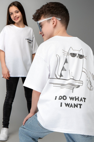 От футболки веет свободой! Великолепный тандем посадки оверсайз и удлиненных рукавов создаёт расслабленный силуэт, а принт намекает на твой творческий вайб.