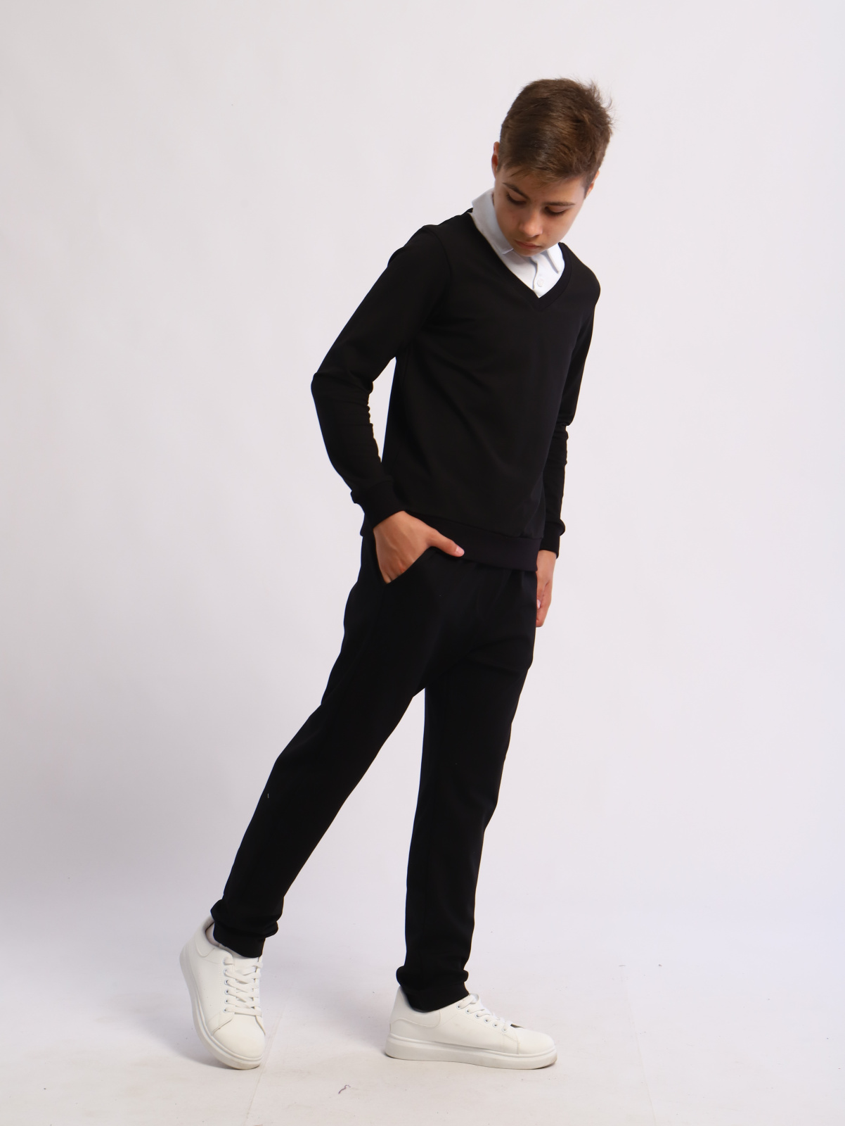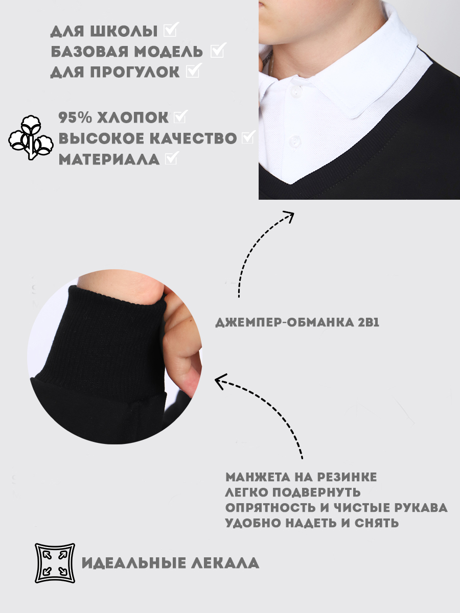 В такой обманке ребенку будет удобно и комфортно. Школьный джемпер можно носить с классическими брюками, джоггерами, спортивками, трико, бриджами, костюмом, пиджаком.