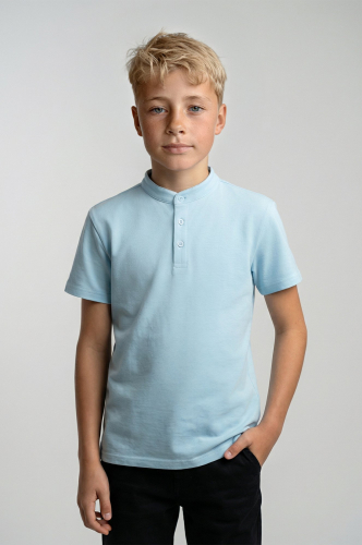 Базовая синяя футболка-поло — отличное решение для школы, прогулок и повседневных образов.