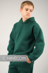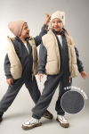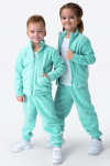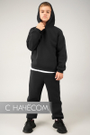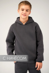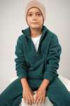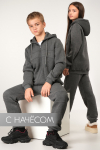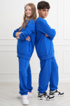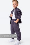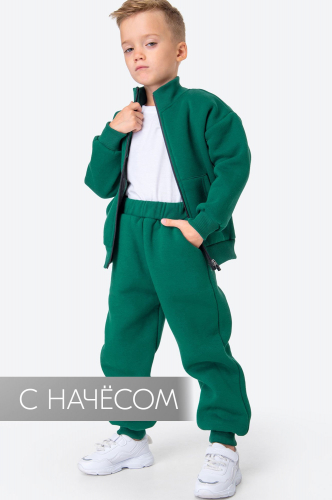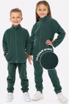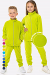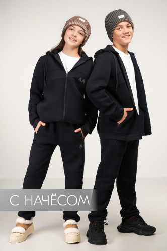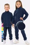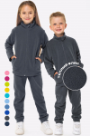 Прямой крой толстовки с воротником-стойкой и свободные брюки делают комплект практичным и уютным. Утепленный спортивный костюм незаменим для детей на осень, зиму и весну — он остаётся комфортным в любой ситуации, его можно носить как поддёву.