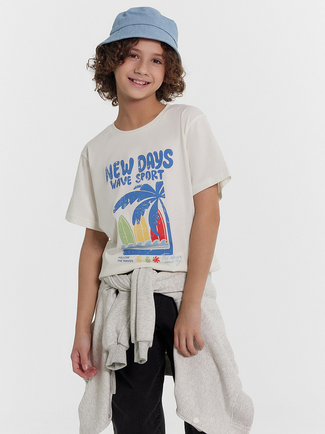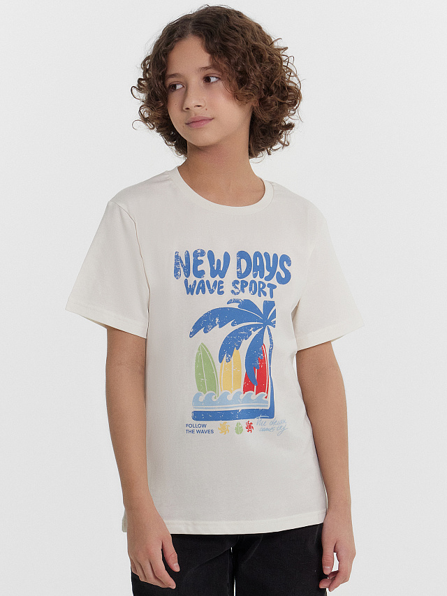 Эта футболка для мальчиков — удобный и практичный элемент гардероба, идеально подходящий для повседневной носки! Прямой силуэт обеспечивает свободную посадку, позволяя легко сочетать модель с разными видами одежды. Короткие рукава делают футболку универсальной и комфортной, а спущенная линия плеча добавляет современный и расслабленный стиль. Горловина круглой формы с обтачкой из рибаны мягко прилегает к шее, обеспечивая удобство и аккуратный вид. Низ футболки и рукавов обработан швом вподгибку, что увеличивает прочность изделия и делает его аккуратным даже после многочисленных стирок. Изделие выполнено из хлопковой кулирки, которая отличается воздухопроницаемостью и мягкостью, создавая комфорт в течение дня. Прекрасный выбор для стильного и удобного гардероба!