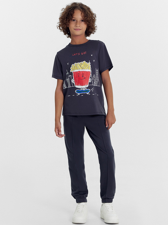 Футболка для мальчика из высококачественного хлопка с оригинальным принтом в виде картошки фри и надписи "Lets go". Ткань мягкая, легкая и эластичная, не сковывает движения, комфортная в носке, отлично подходит для носки в любое время года как верхняя одежда — летом или изделие, которое можно надеть под другую вещь — в прохладное время года. Детская футболка для мальчика подойдет для детского сада, активных игр, занятий спортом, прогулок и путешествий. Она стала поистине базовым элементом гардероба, так как сочетается с большинством одежды. В коллекции есть базовые и яркие цвета, однотонные модели и варианты с интересными дизайнерскими принтами. Эти детские футболки подойдут как для высоких, так и не для высоких мальчиков. Отличный выбор от Mark Formelle на каждый день!