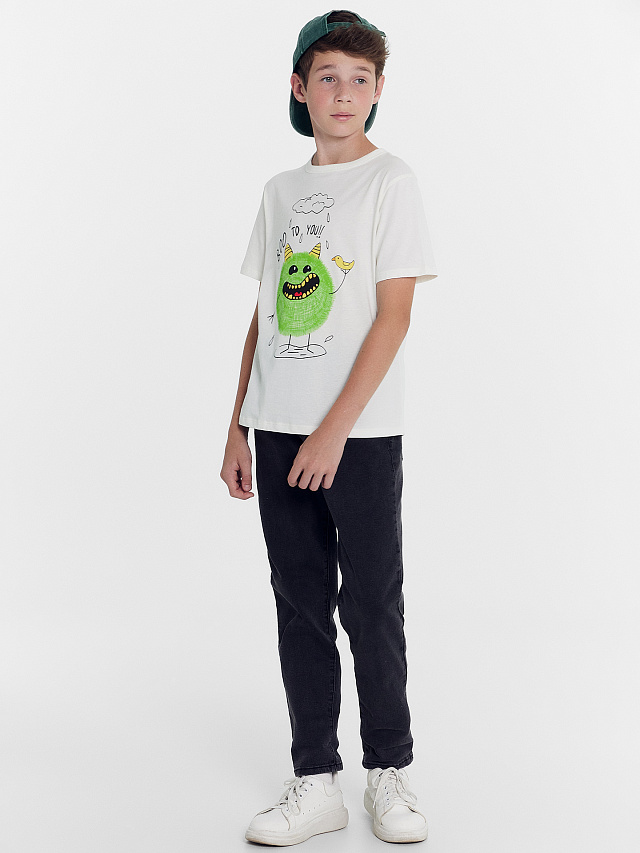 Футболка для мальчиков светло-молочная с печатью