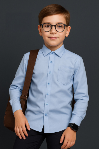 Подростковая рубашка голубого цвета станет отличным дополнением школьной формы. Такая модель подойдет для школы, повседневных осенних, весенних и летних прогулок, праздников и торжественных мероприятий.