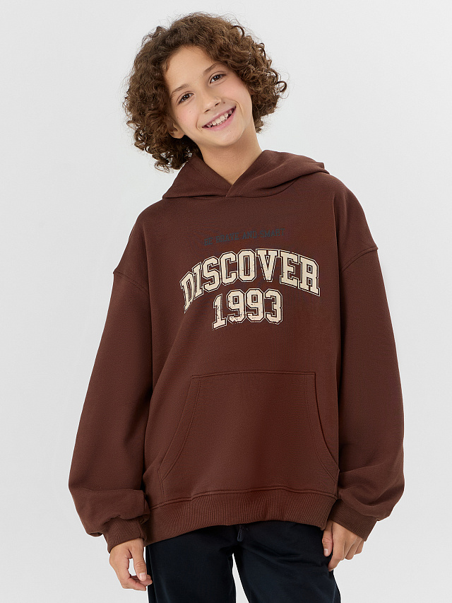 Худи оверсайз для мальчиков с надписью создано для активного образа жизни. Модель из хлопка отличается особой мягкостью и способностью пропускать воздух, что важно для подвижных детей.