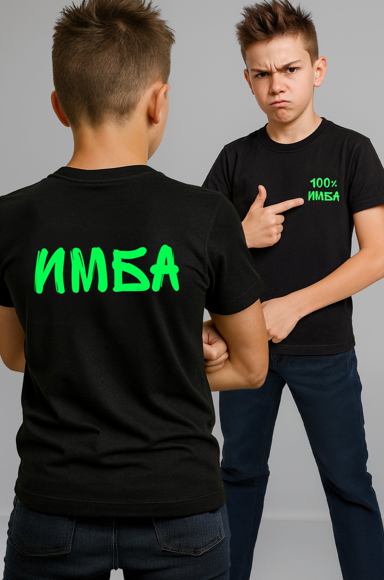 100% имба — и точка! Детская футболка ..показатьточно не останется без внимания: яркая надпись спереди и крупная на всю спину создают дерзкое настроение для настоящих звёзд. Хлопковая футболка для девочек и мальчиков идеальна для активного лета — когда хочется двигаться, играть и веселиться без остановки.
