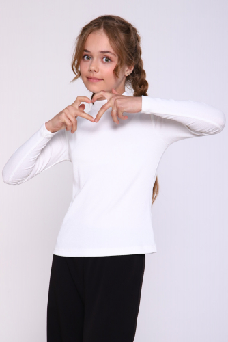 Джемпер для девочки нежной расцветки из полотна в рубчик лапша - отличный вариант как для школьных будней, так и для внешкольных мероприятий. Мягкое трикотажное изделие не только невероятно комфортно в носке, но еще и не деформируется при стирке. Водолазка нежных цветов гармонично будут сочетаться с любыми предметами гардероба вашей принцессы.