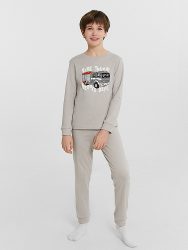 Комплект для мальчиков домашний бежевый с принтом "fire truck"