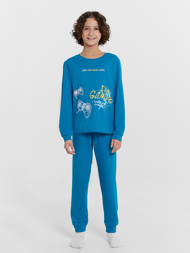 Повседневная пижама для мальчиков из высококачественного хлопка. Состоит из джемпера с длинным рукавом и брюк. Изготовлена пижама для мальчика из высококачественного натурального материала, что обеспечивает комфорт как в летний, так и в зимний период. Материал отлично тянется, хорошо впитывает влагу и быстро сохнет, не сковывает движений и не создает парникового эффекта. Отличный вариант для каждодневной носки. Пижама детская для подростка мальчика отлично подходит для отдыха в комфортной домашней обстановке и сна. В линейке много интересных расцветок, есть красивые варианты с принтами. Если вы устали от простых и не замысловатых моделей и хотите разнообразить гардероб вашего ребенка, этот вариант порадует. Такая пижама понравится всем мальчикам и подросткам, ведь она выполнена в ярких цветах и украшена рисунками. купить пижаму детскую недорого можно у нас на сайте и в магазинах Mark Formelle!