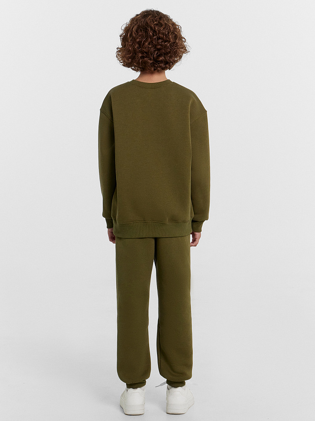 Комплект для мальчиков (джемпер, брюки) оливково-зеленый с печатью