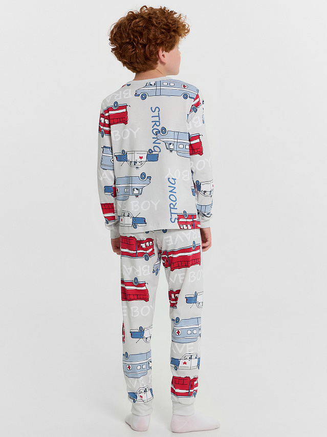 Комплект для мальчиков (джемпер, брюки) серые с машинками