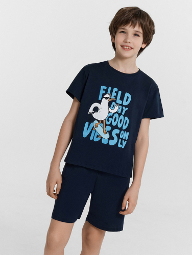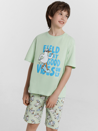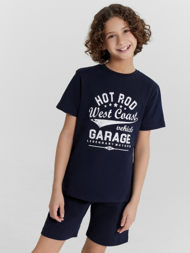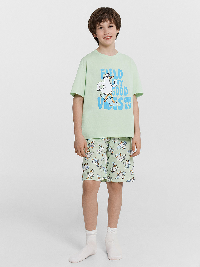 Эта пижама для мальчиков сочетает в себе комфорт и функциональность, создавая стильный и практичный домашний образ. Футболка свободного силуэта с круглой горловиной и свободными рукавами, а также слегка спущенной линией плеча, обеспечивает непринужденную посадку и удобство при носке. Шорты ниже колена, свободного силуэта с высокой посадкой на талии, дополнены боковыми карманами, что добавляет удобство и практичность. Изделие выполнено из хлопковой кулирки, что гарантирует мягкость, комфорт и отличную воздухопроницаемость, идеально подходящую для активного дня и спокойного сна. Эта пижама станет отличным выбором для каждого мальчика, обеспечивая ему комфорт и стиль на каждый день.