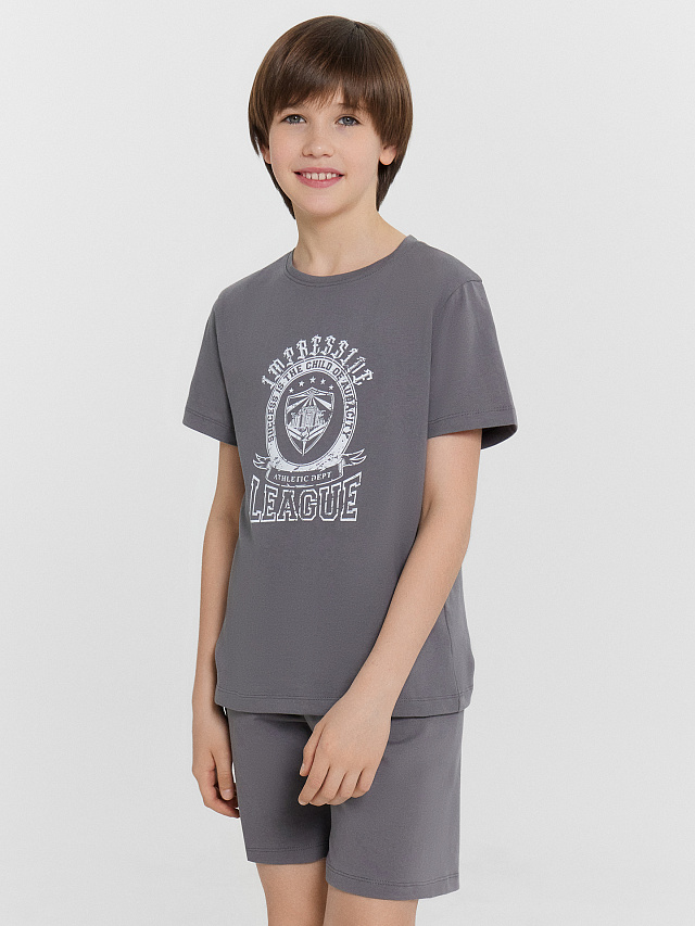 Пижама для мальчиков — идеальное сочетание комфорта и практичности для сна и отдыха! Комплект включает свободную футболку с круглой горловиной и короткими рукавами, обеспечивающую удобную посадку и комфорт в течение ночи. Шорты длиной до колен дополнены эластичной тесьмой в поясе, что позволяет регулировать посадку и гарантирует свободу движений. Изделие выполнено из хлопковой кулирки — мягкого и воздухопроницаемого материала, который приятно прилегает к коже и дарит ощущение легкости. Такая ткань обеспечивает уют и комфорт в любую погоду. Этот комплект станет отличным выбором для спокойного сна и расслабленного домашнего отдыха, позволяя ребёнку чувствовать себя комфортно и свободно. Универсальная и удобная модель для повседневного гардероба!