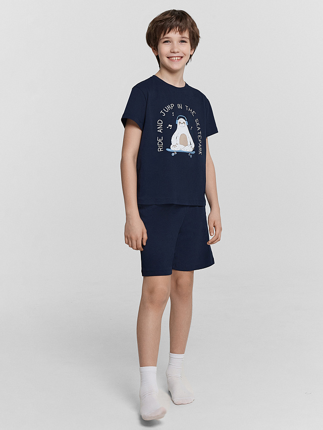 Комплект для мальчиков состоит из футболки и шорт. Футболка прямого силуэта с короткими рукавами. Горловина круглой формы. Шорты длиной до колен. Пояс с эластичной тесьмой внутри. Футболка имеет удобный крой и отличную посадку. Выполнена из 100% хлопка, обеспечивает мягкость и комфорт во время сна. Шорты оснащены эластичным поясом с регулируемым шнурком для комфортной посадки. Пижама идеально подходит ребятам, которые ценят удобство и стильные вещи. Широкий размерный и цветовой ряд. Рекомендуем!