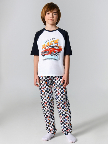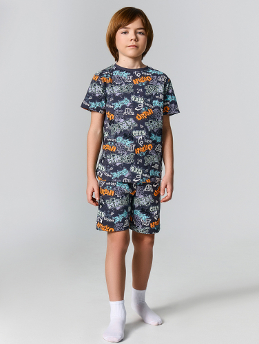 Пижама для мальчиков от Mark Formelle - удобный и практичный вариант для сна и домашнего отдыха. Классическая футболка с круглой горловиной и короткими рукавами обеспечивает комфортную посадку и свободу движений, а мягкий хлопковый материал дарит приятные тактильные ощущения. Шорты длиной до колен создают удобный силуэт, а эластичная тесьма в поясе позволяет мягко фиксировать изделие, обеспечивая комфорт в течение всей ночи. Пижама выполнена из хлопкового материала кулирного переплетения, который отличается воздухопроницаемостью и мягкостью, делая еt идеальным выбором для спокойного сна. Практичный, удобный и уютный комплект, который подарит комфорт и приятные ощущения каждый день!