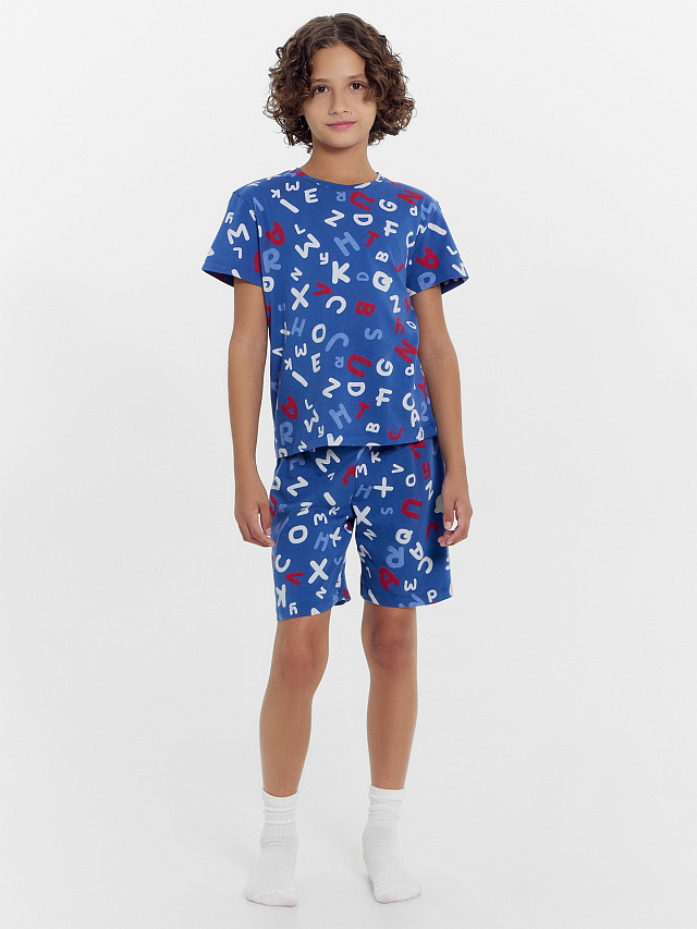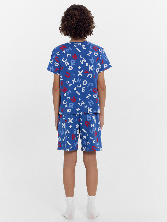 Комплект для мальчиков (футболка, шорты) синий с буквами