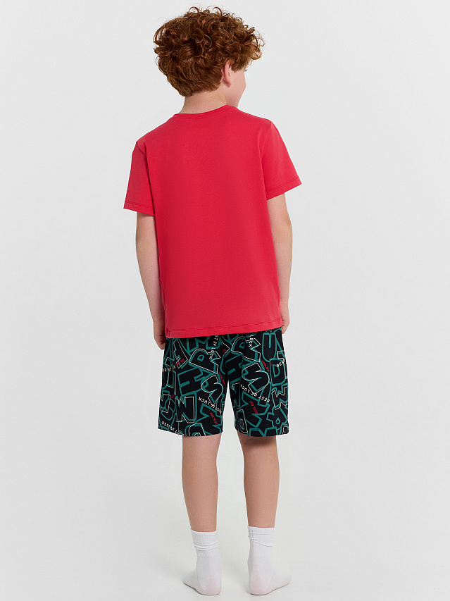 Универсальная пижама для мальчиков из высококачественного хлопка. Состоит из футболки с коротким рукавом и шорт. Футболка свободная, с круглой горловиной. Шорты длиной до колен, с эластичной тесьмой в поясе. Изготовлена пижама для мальчика из высококачественного натурального материала, что обеспечивает комфорт как в летний, так и в зимний период. Материал отлично тянется, хорошо впитывает влагу и быстро сохнет, не сковывает движений и не создает парникового эффекта. Отличный вариант для каждодневной носки. Пижама детская для подростка мальчика отлично подходит для отдыха в комфортной домашней обстановке и сна. В линейке много интересных расцветок, есть красивые варианты с принтами. Если вы устали от простых и не замысловатых моделей и хотите разнообразить гардероб вашего ребенка, этот вариант порадует. Такая пижама понравится всем мальчикам и подросткам, ведь она выполнена в ярких цветах и украшена рисунками. Купить пижаму детскую недорого можно у нас на сайте и в магазинах Mark Formelle!