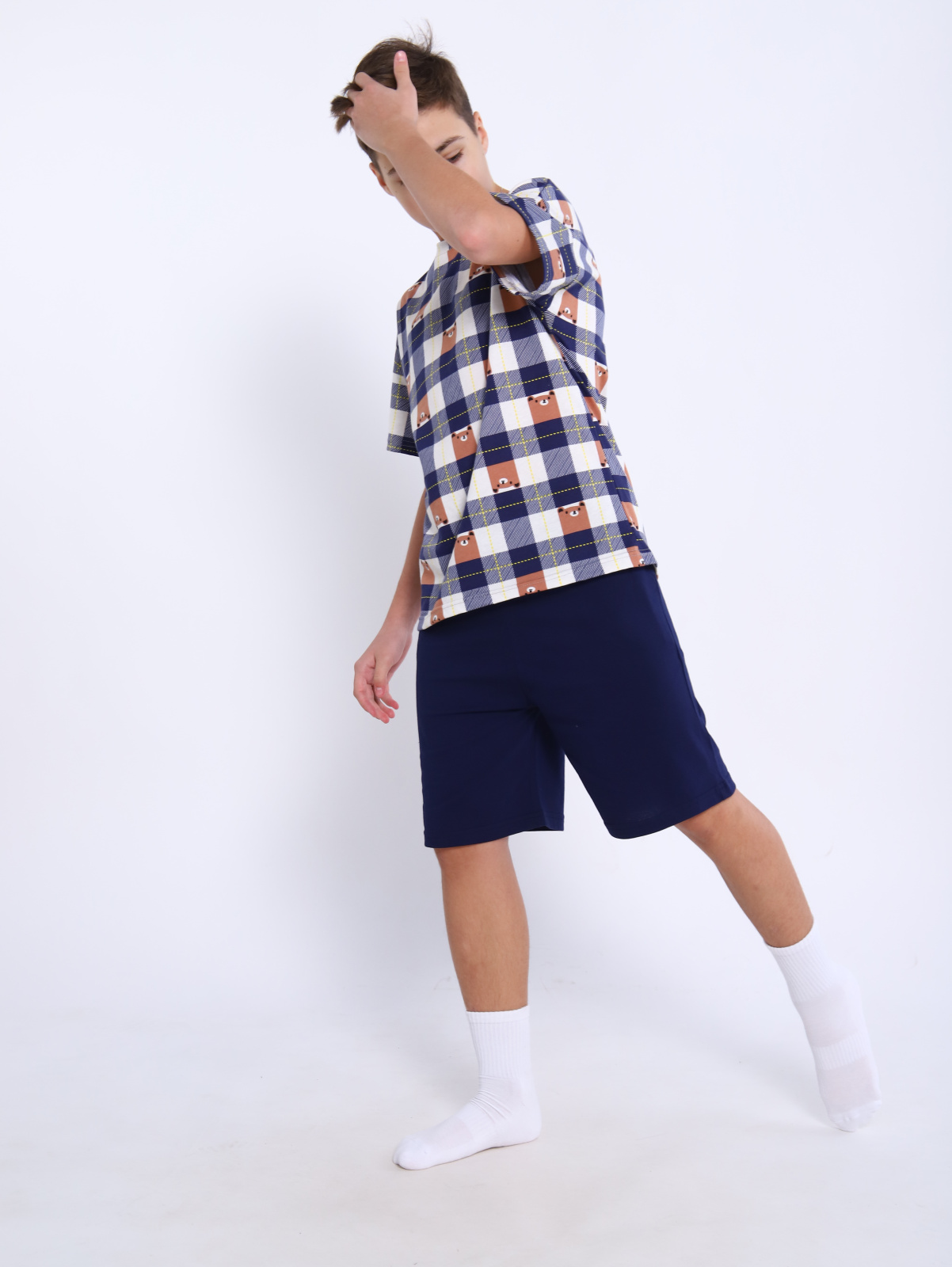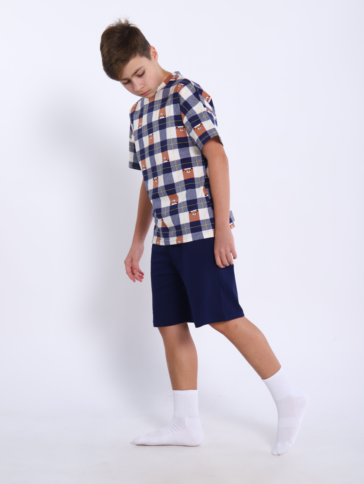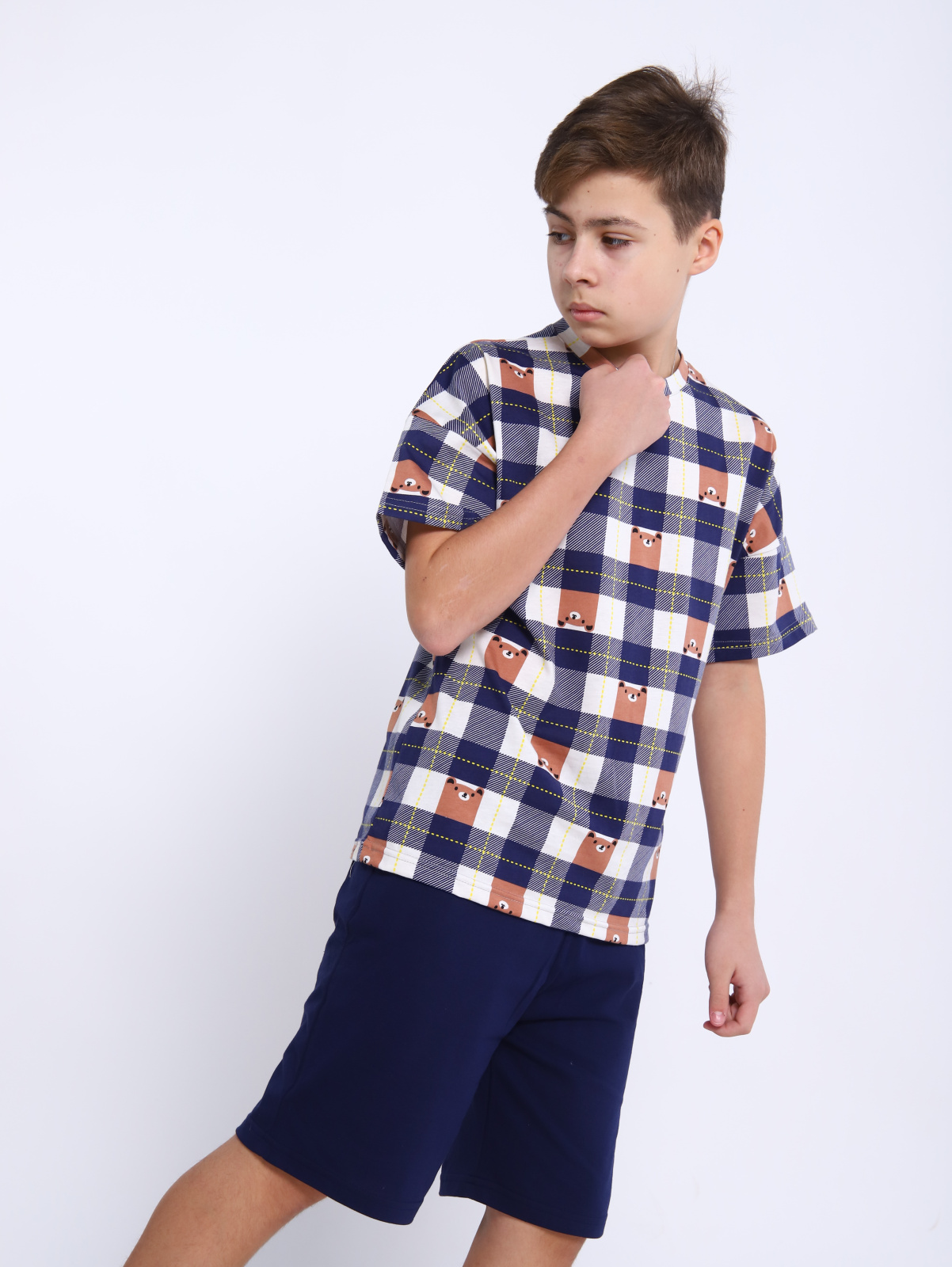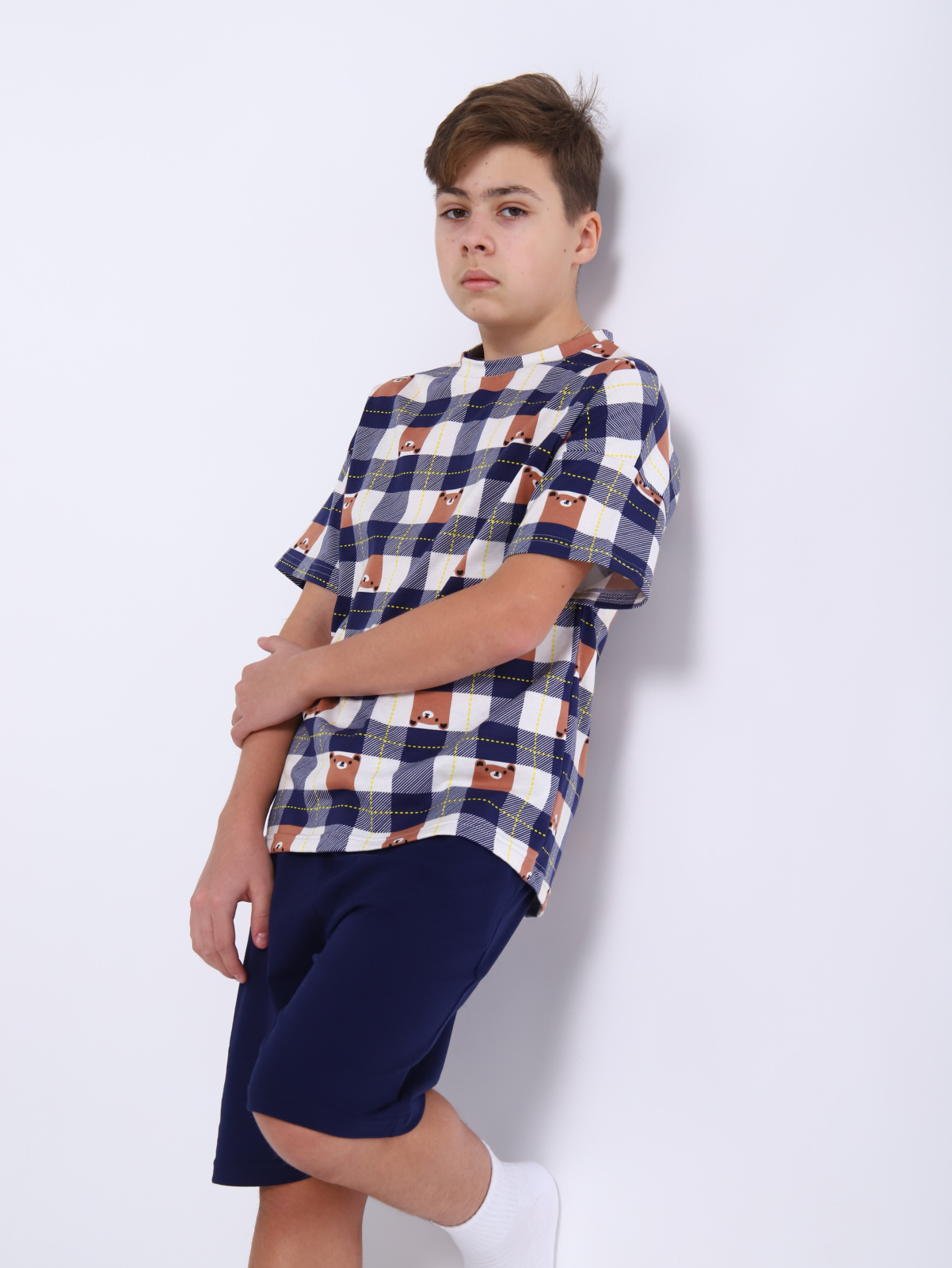 Модный домашний комплект для мальчиков-подростков остается на пике мужской и подростковой моды. Беспроигрышное сочетание для дома,стильные свободные шорты на резинке с комфортной свободной футболкой oversize. Подростковый комплект шорты + футболка сшит из легкого приятного натурального хлопкового трикотажа. Детский костюм удобный, прочный, но при этом легкий и воздухопроницаемый. Oversize-футболка свободного кроя со спущенной линией плеча универсальна, подойдёт мальчишкам и парням любого возраста. Комплект с бриджами очень удобен для танцев и активных групповых занятий спортом, например футболом или волейболом, баскетболом. Туристические походы в жаркий летний период не обойдутся без комплекта двойки с широкимии шортами. Подарок современному подростку должен быть не только функциональным, но и модным, как этот комплект. Футболка и шорты в комплекте могут использоваться как самостоятельные изделия и собирать разные интересные сочетания в гардеробе требовательного к моде мальчика-подростка. Легкая летняя модель комплекта из хлопковой ткани - это прекрасный вариант домашней одежды для отдыха и сна. В нем приятно встретить друзей дома. Трендовая пара с оптимальным кроем для домашних занятий и уроков, для поездок на отдых и дачу, спортивных упражнений не стесняет движений при физической активности. Прекрасно справится с функцией детской пижамы. Яркий костюм идеален в сочетании с другой подростковой одеждой. Натуральный состав позволяет телу ребенка дышать. Допускается использовать этот комплект как подарок на новый год. Принт с мишками создает праздничное рождественское настроение. Цветной универсальный костюм может стать прекрасным подарком и к летнему сезону для поездки в лагерь, к морю, и как домашняя одежда мальчику или юноше подростку на день рождения или к 1 сентября. Удобная кофта, свободные штаны сохраняют свой первоначальный вид при правильном уходе.