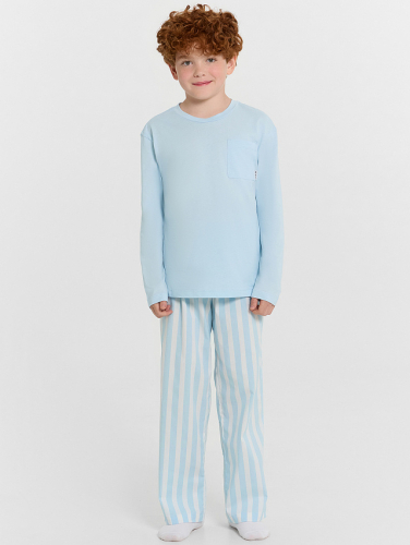 Комплект для мальчиков, состоящий из джемпера и брюк, выполнен из натурального хлопка — мягкого, дышащего материала, обеспечивающего комфорт в течение всего дня. Джемпер имеет свободный крой с круглой горловиной, длинными рукавами и нагрудным карманом, что делает образ практичным и стильным. Обработка низа и рукавов швом вподгибку подчеркивает аккуратность исполнения и сохраняет форму изделия после стирок. Брюки прямого силуэта с эластичным поясом удобно сидят на талии, не сдавливая и не ограничивая движений. Такой комплект подойдет для дома, прогулок или детского сада, сочетая в себе функциональность, комфорт и лаконичный дизайн.
