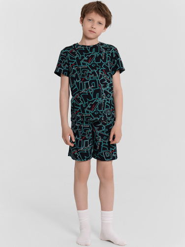 Пижама для мальчиков - это отличный комплект для сна и отдыха. Футболка имеет круглую горловину и короткие рукава, обеспечивающие комфорт и свободу движений. Шорты длиной до колен оснащены эластичной тесьмой в поясе для надежной посадки. Модель выполнена из хлопковой кулирки - натурального материала, который обладает отличной воздухопроницаемостью и мягкостью. Благодаря этим свойствам, такая пижама идеально подходит для сна и отдыха, создавая уют и комфорт в любое время года.
