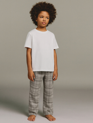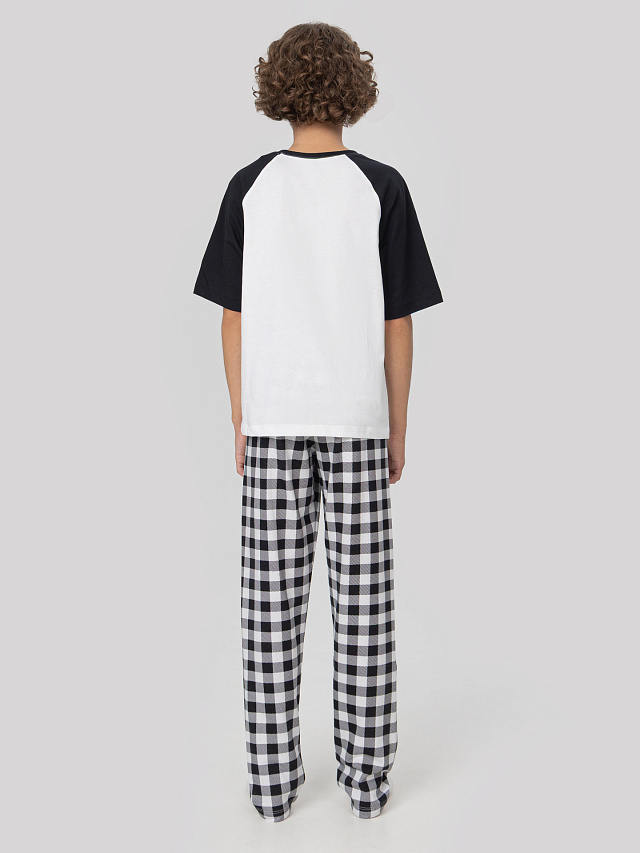 Домашний комплект для мальчиков — это удобная и практичная пижама, состоящая из джемпера и брюк. Джемпер имеет круглую горловину с аккуратной обтачкой из рибаны, что обеспечивает комфортную посадку и сохраняет форму при носке. Короткие рукава реглан не стесняют движений, а низ джемпера и рукавов обработан швом вподгибку, что придает изделию аккуратный внешний вид. Брюки прямого кроя, с эластичным поясом, удобно сидят на талии и не сдавливают живот. Низ брюк также застрочен вподгибку. Комплект выполнен из натурального хлопка, мягкого и приятного к телу, что делает его идеальным для сна и домашнего отдыха.
