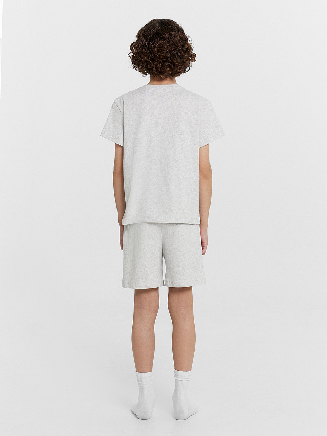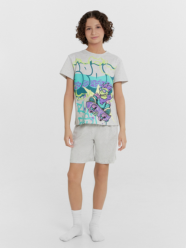 Домашний комплект для мальчиков — идеальное сочетание комфорта и практичного дизайна. Футболка прямого силуэта с короткими рукавами и круглой горловиной обеспечивает удобную посадку и свободу движений. Легкий крой делает ее комфортной для сна и повседневного отдыха. Шорты длиной до колен оснащены эластичным поясом с регулируемым шнурком, что позволяет индивидуально подстраивать посадку, обеспечивая дополнительный комфорт. Выполненный из 100% хлопка, комплект мягкий, дышащий и приятный к коже, создавая максимальное удобство. Этот вариант отлично подойдет мальчикам, которые ценят удобство, качество и стиль, делая отдых и сон еще более приятным!