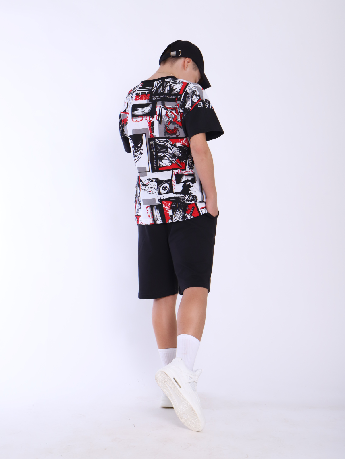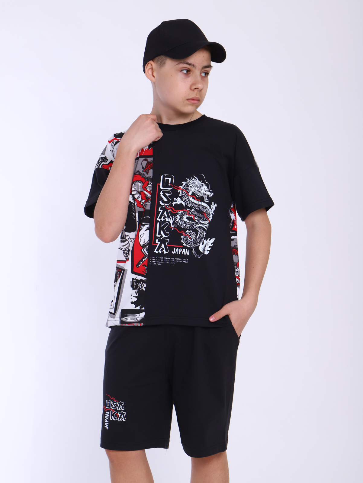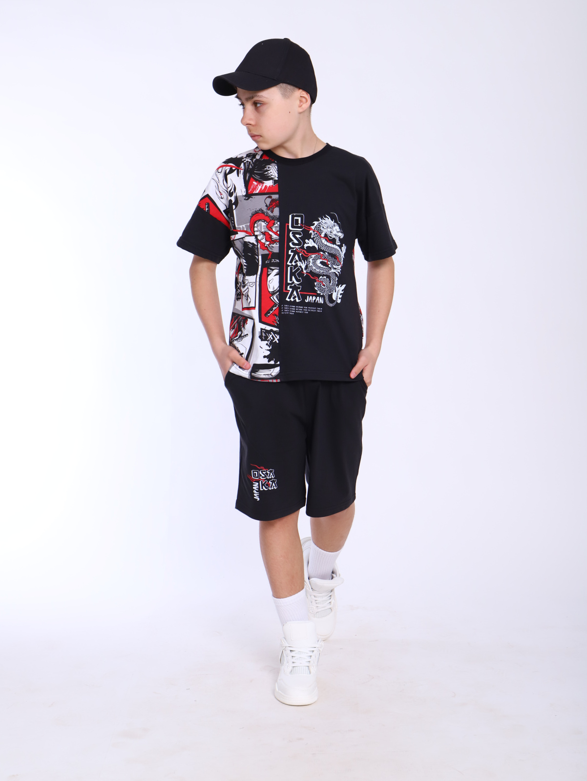 Легкий натуральный комплект на мальчика в сшит из хлопкового трикотажа. Костюм летний состоит из футболки и шорт-бридж чуть длиннее колена. Легкий, немаркий, удобный для активных подростков костюм с футболкой позволяет ребенку бегать, прыгать и чувствовать себя комфортно на улице и дома! Костюм подходит для прогулок на свежем воздухе, для активных спортивных игр, для катания на велосипеде. В поездке на отдых к морю или в детский лагерь удобно его одеть в дорогу . Натуральный хлопковый состав дает возможность телу дышать, мальчик чувствует комфорт и удобство. Комплект с удовольствием носят дома как домашнюю одежду. Комплект для летнего отдыха может служить спортивной формой для футбола или волейбола. Цвет костюма практичный и немаркий. Костюм подростковый двойка с капри это отличный подарок к летнему сезону или на 23 февраля. Костюм базовый универсальный для активных подростков может служить пляжной одеждой. Чтобы детский летний костюм милитари с шортами служил долго, необходимо соблюдать рекомендации по уходу. Утюжить принт только с изнаночной стороны. Повседневный костюм используют не только летом. Он демисезонный. Зимой осенью и весной он прекрасно справляется с функциями домашнего комплекта для отдыха. Обращаем ваше внимание на то, что рисунок может располагаться как справа, так и слева.