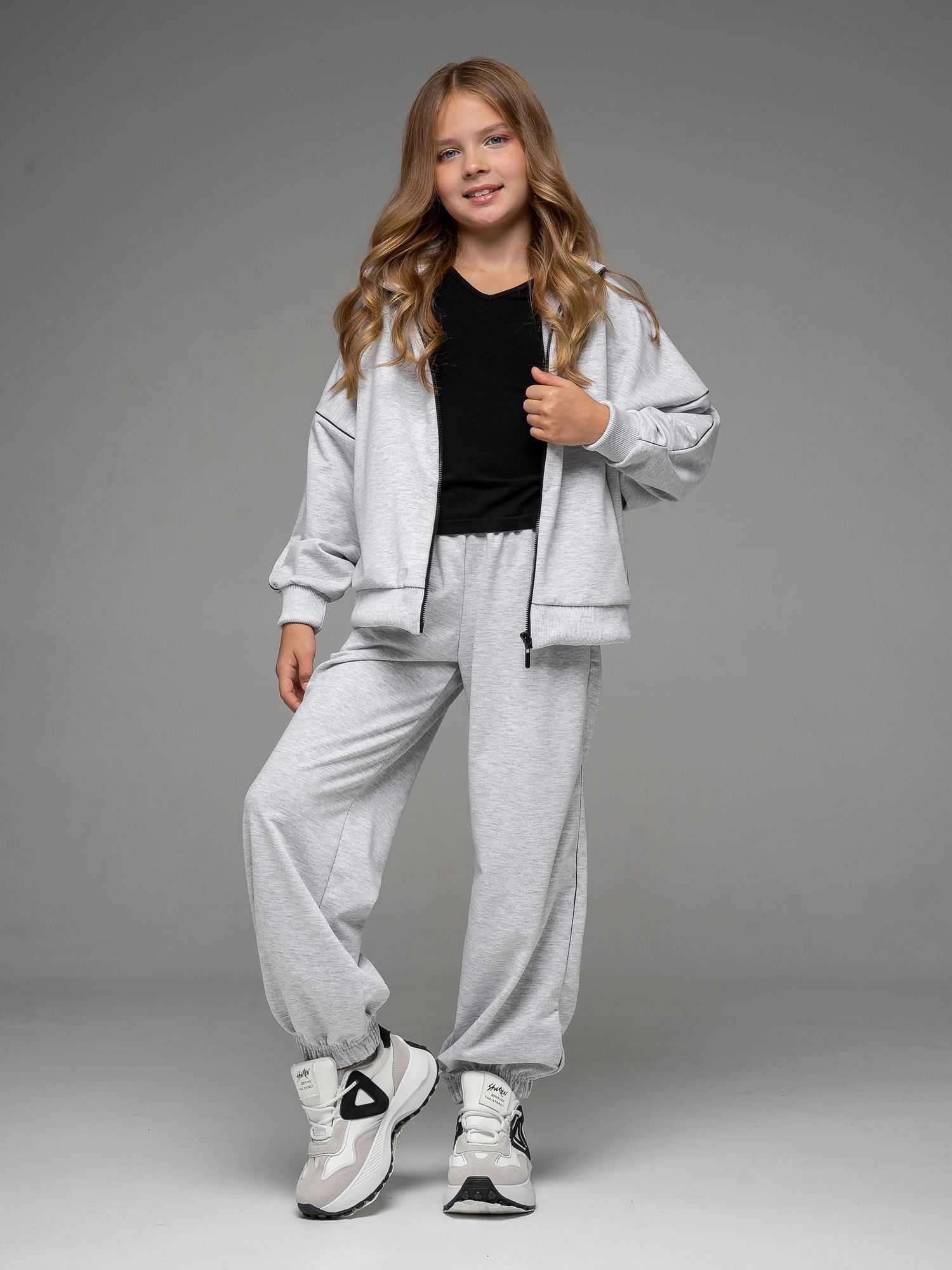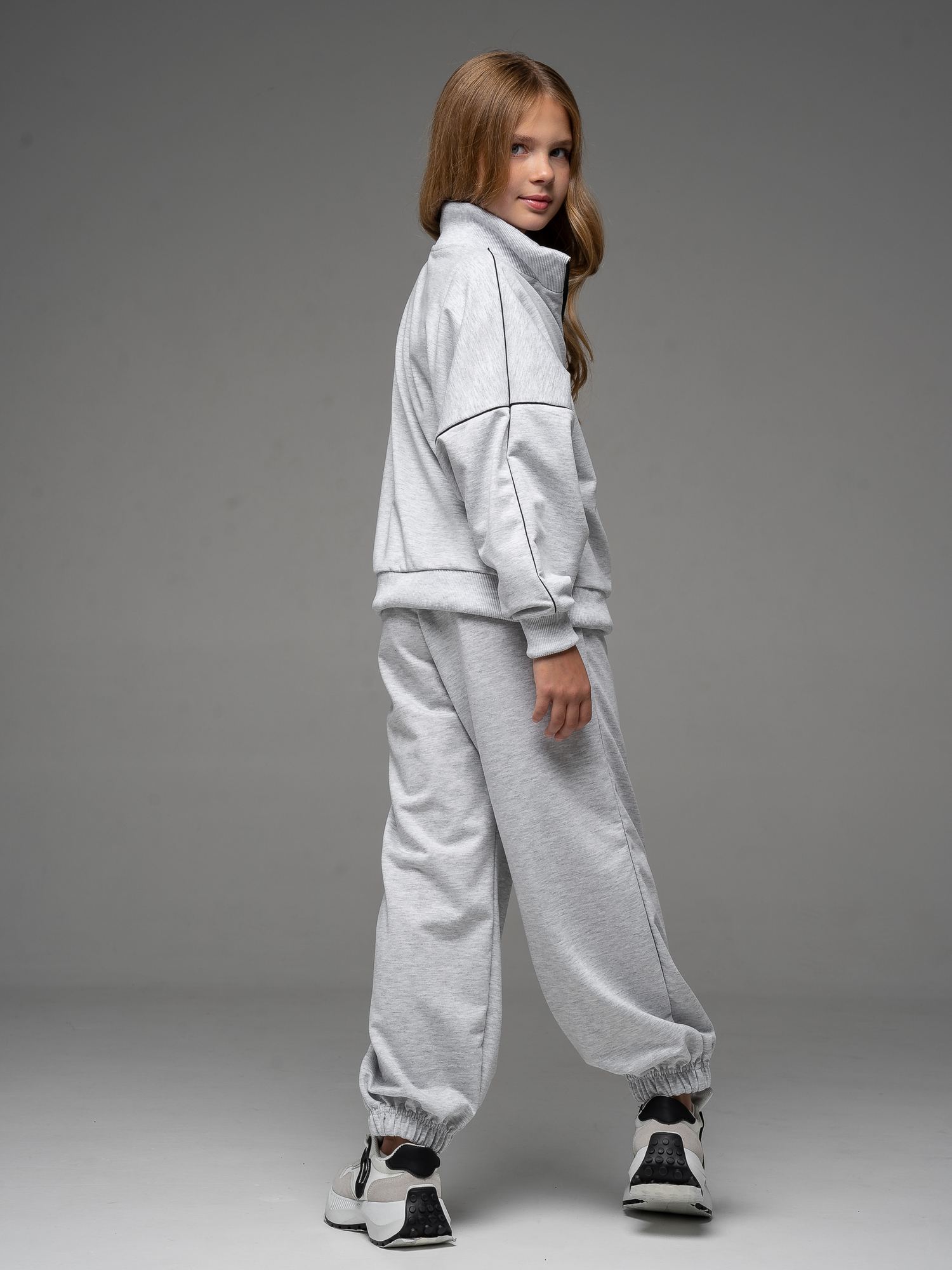 Спортивный костюм из футера серого цвета свободного силуэта - идеальный выбор для активного отдыха и занятий спортом!