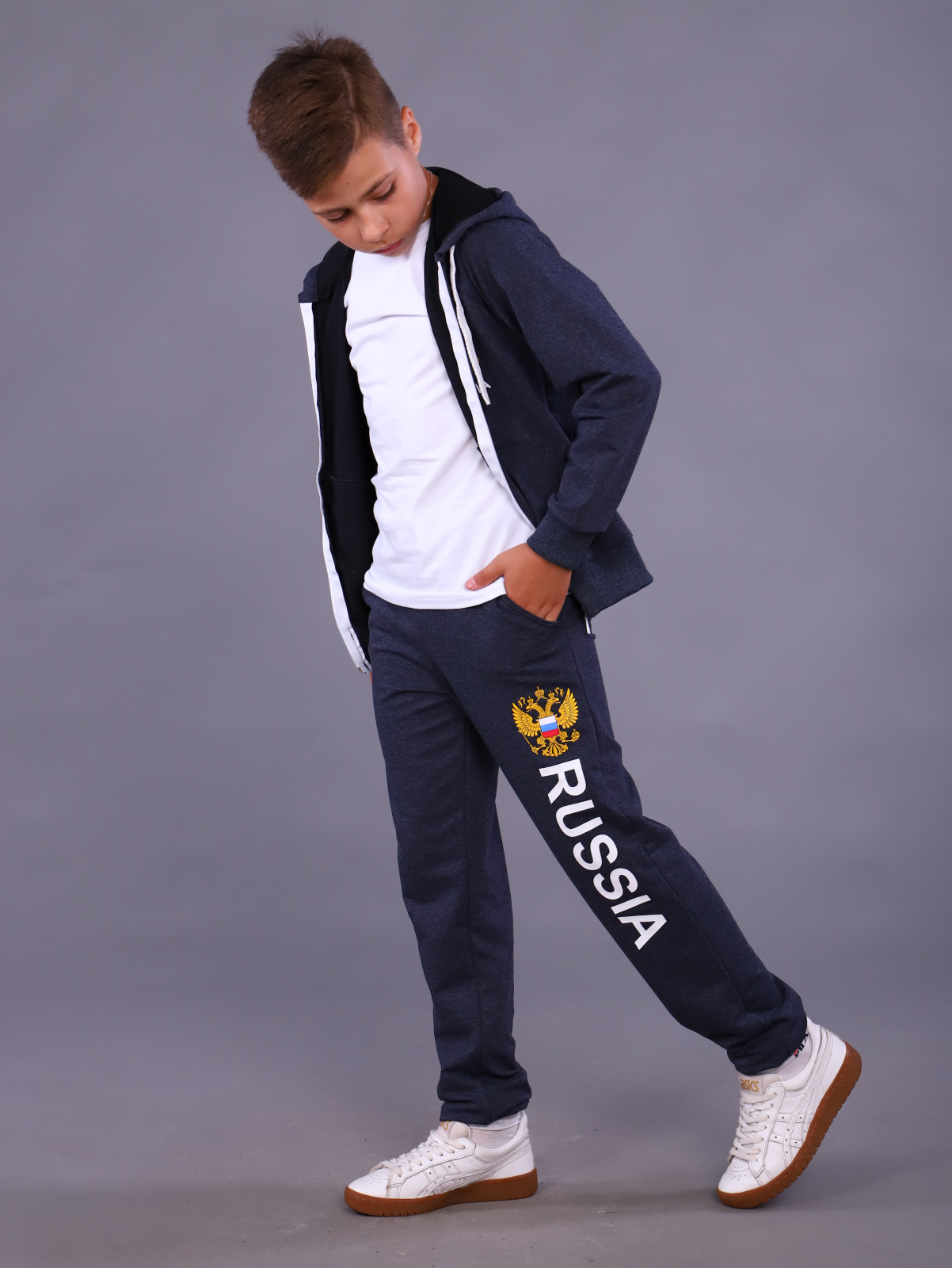 Брюки подросткового комплекта прямого силуэта, с принтом, с карманами в боковых швах, поясом на резинке, шнурком для регулировки по талии, низ брючин манжет.