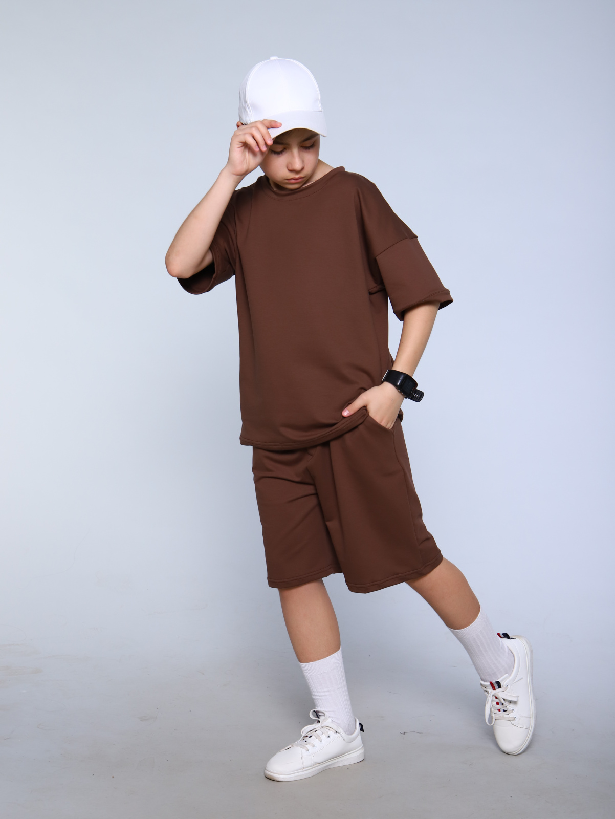 Модный монохромный комплект для мальчиков-подростков остается на пике мужской и подростковой моды. Беспроигрышное сочетание для лета – стильные свободные шорты на резинке с комфортной свободной футболкой oversize. Подростковый комплект шорты + футболка сшит из приятной натуральной ткани с петельчатым оборотом футер с добавлением лайкры. Однотонный комплект очень удобный, прочный, но при этом легкий и воздухопроницаемый. Oversize-футболка свободного кроя со спущенной линией плеча универсальна, подойдёт мальчишкам и парням любого возраста. Повседневный летний костюм хорошо подойдет для прогулок, отдыха, детского лагеря, санатория, дома, туризма, походов, путешествий, занятий спортом и фитнесом, в подарок современному подростку. Футболка и шорты в комплекте могут использоваться как самостоятельные изделия и собирать разные интересные сочетания в гардеробе требовательного к моде мальчика-подростка.