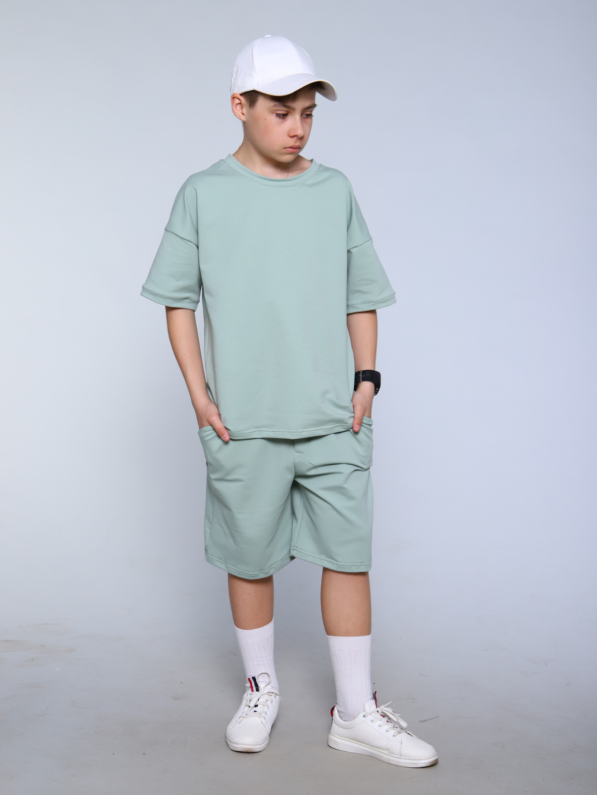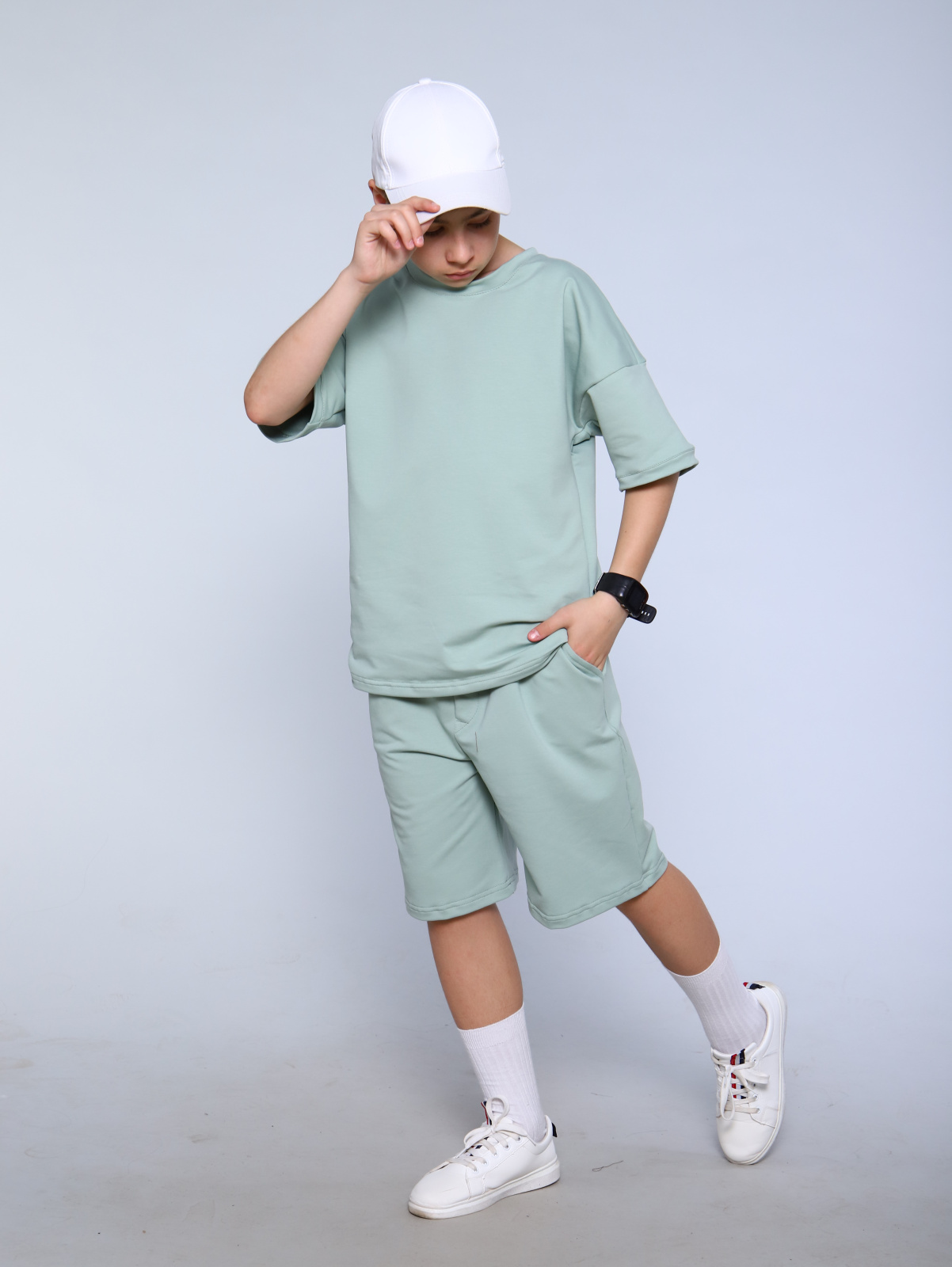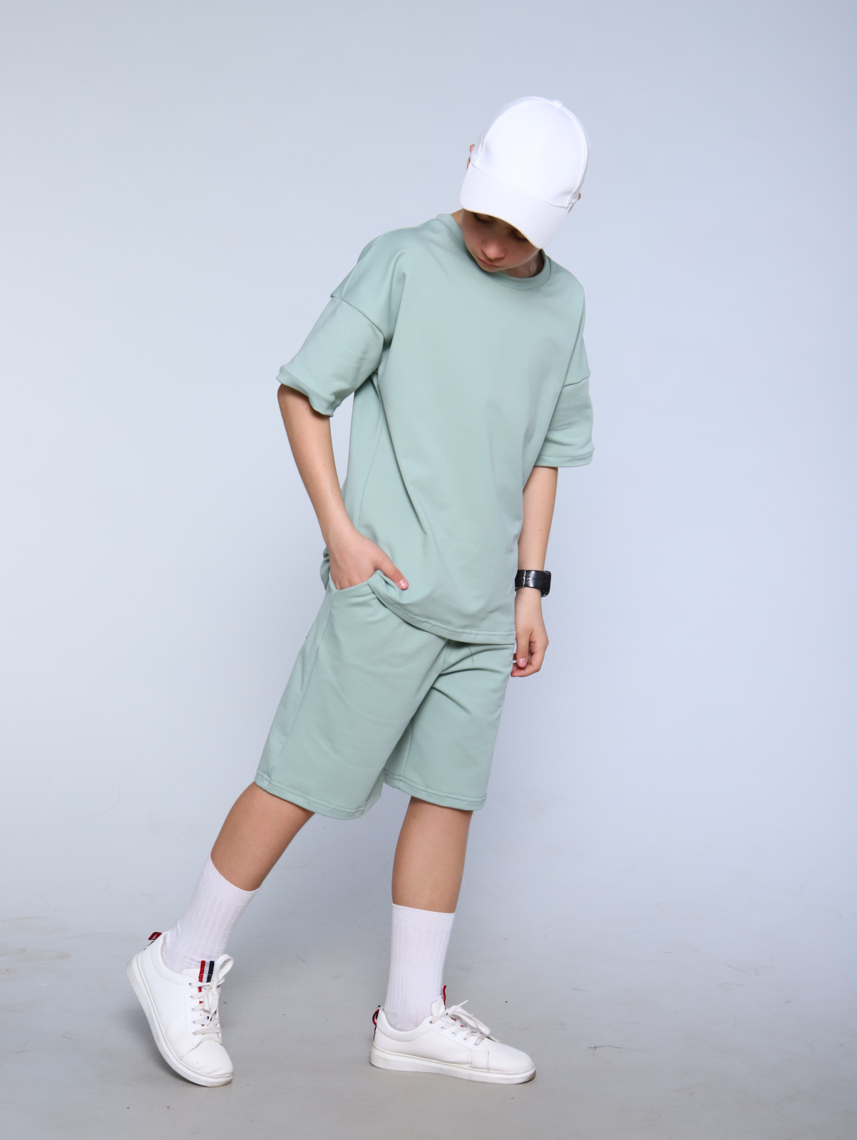 Модный монохромный комплект для мальчиков-подростков остается на пике мужской и подростковой моды. Беспроигрышное сочетание для лета – стильные свободные шорты на резинке с комфортной свободной футболкой oversize. Подростковый комплект шорты + футболка сшит из приятной натуральной ткани с петельчатым оборотом футер с добавлением лайкры. Однотонный комплект очень удобный, прочный, но при этом легкий и воздухопроницаемый. Oversize-футболка свободного кроя со спущенной линией плеча универсальна, подойдёт мальчишкам и парням любого возраста. Повседневный летний костюм хорошо подойдет для прогулок, отдыха, детского лагеря, санатория, дома, туризма, походов, путешествий, занятий спортом и фитнесом, в подарок современному подростку. Футболка и шорты в комплекте могут использоваться как самостоятельные изделия и собирать разные интересные сочетания в гардеробе требовательного к моде мальчика-подростка.