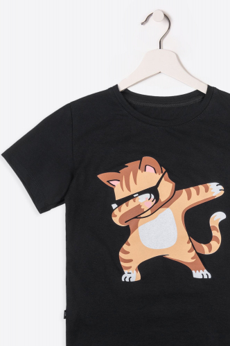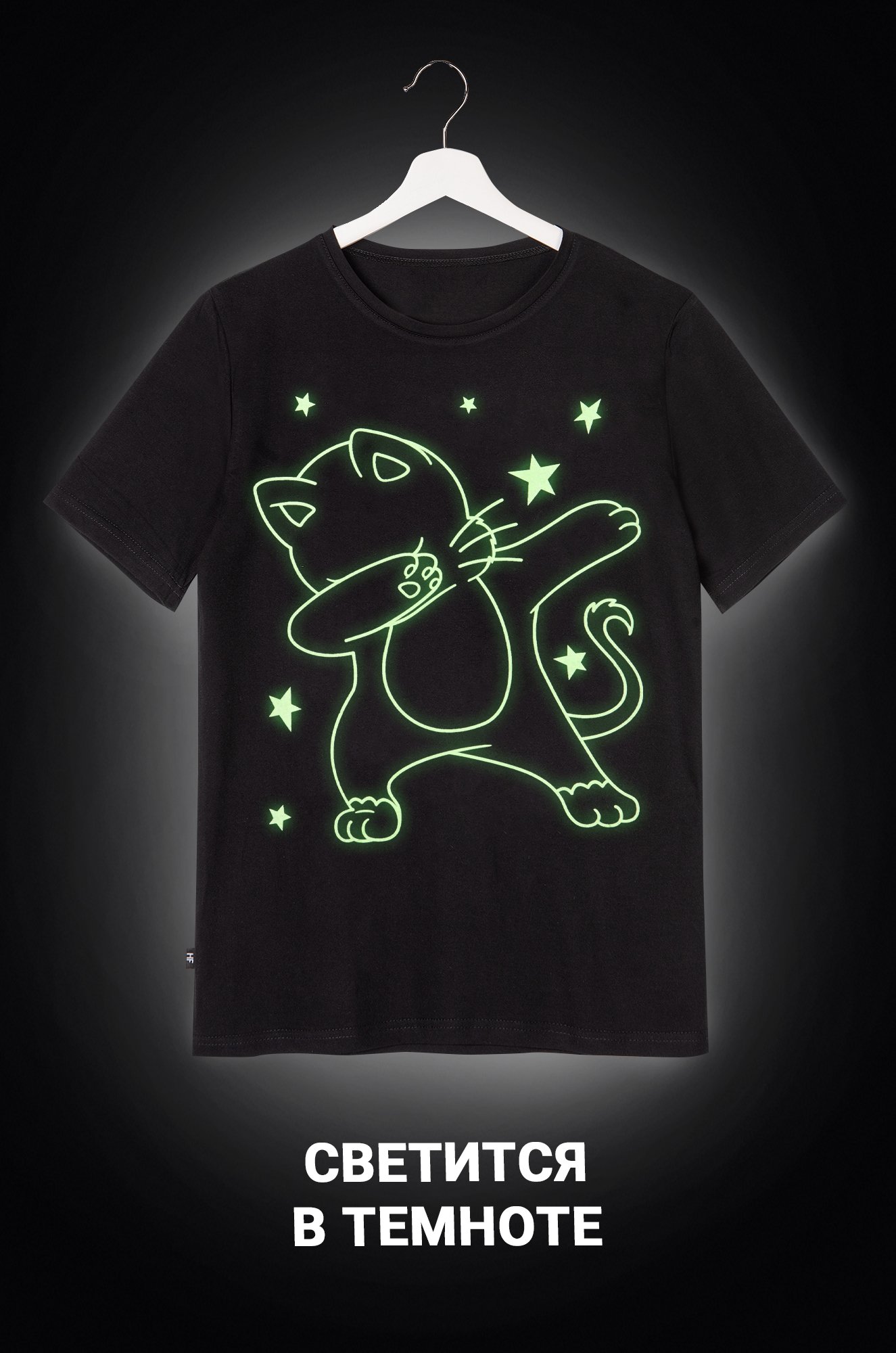 Футболка с люминесцентным принтом кот ..показатьдля девочки, светится в темноте.Черная футболка выполнена из легкого хлопкового трикотажа, мягкого, прочного и приятного к телу, прослужит долго. Модель имеет прямой классический крой, а значит будет комфортно сидеть, не стесняя движений.