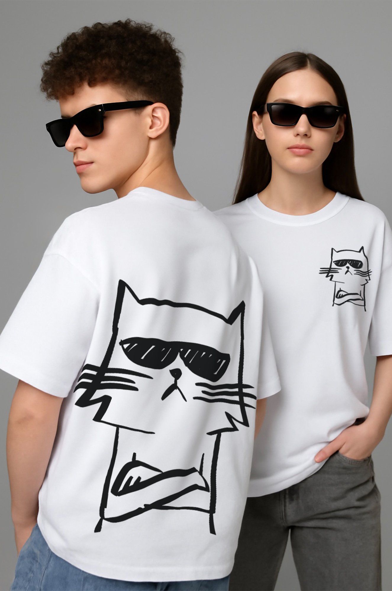 Белая футболка с принтом Крутой кот по..показатькоряет с первого взгляда. Легкий хлопковый трикотаж и свободная посадка оверсайз делают её идеальным вариантом на каждый день.