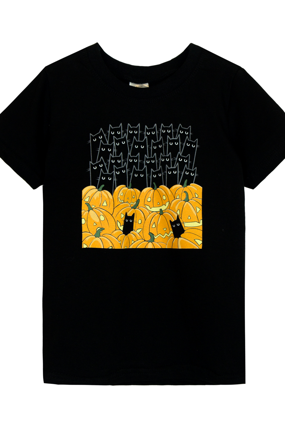 Футболка детская прямого силуэта с в тачным коротким рукавом. Горловина круглая обработана воротником из рибаны в цвет изделия. Низ изделия и рукавов обработан швом в подгибку. На полочке флуоресцентный принт. Цвет: черный; Материал: кулирка;кулирка; Состав: 100% хлопок.