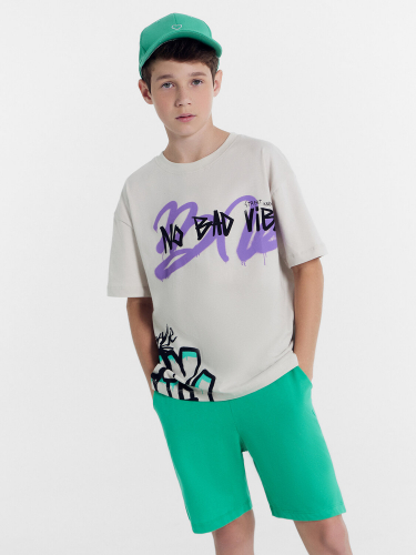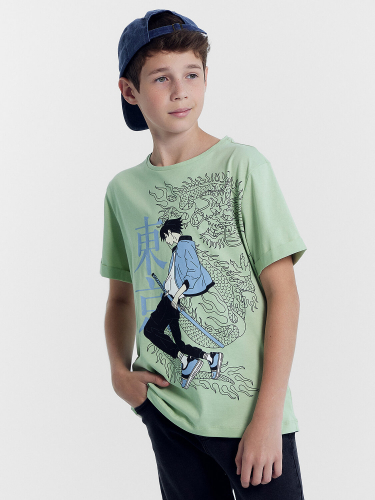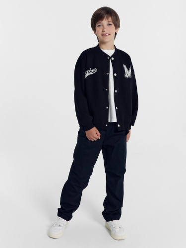 Брюки для мальчиков осенне-зимнего ассортимента. Брюки карго, посадка высокая. Пояс отрезной с эластичной тесьмой внутри, образуют сборку. По поясу проложены отделочные строчки. На передних деталях карманы с отрезным бочком. По боковым швам накладные карманы с клапаном. На середине колена, передней детали заутюженные декоративные складки. По низу брюк подгибка с эластичной тесьмой с фиксаторами, образует сборку.