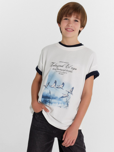 Футболка свободного силуэта из хлопковой трикотажной кулирки. Длина до середины бедер. Рукава короткие. Горловина круглой формы, с обтачкой из рибаны. Спущенная линия плеча дарит особый комфорт. Стильно и удобно!