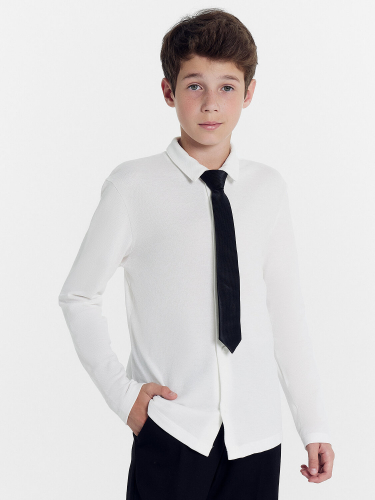 Майка полуприлегающего силуэта из хлопковой трикотажной кулирки. Длина до середины бедер. Горловина круглая, окантована мягкой бейкой. Нижний срез обработан плоским швом. Комфортная классика для вашего мальчика!