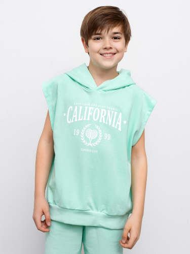 Майка полуприлегающего силуэта из хлопковой трикотажной кулирки. Длина до середины бедер. Горловина круглая, окантована мягкой бейкой. Нижний срез обработан плоским швом. Комфортная классика для вашего мальчика!